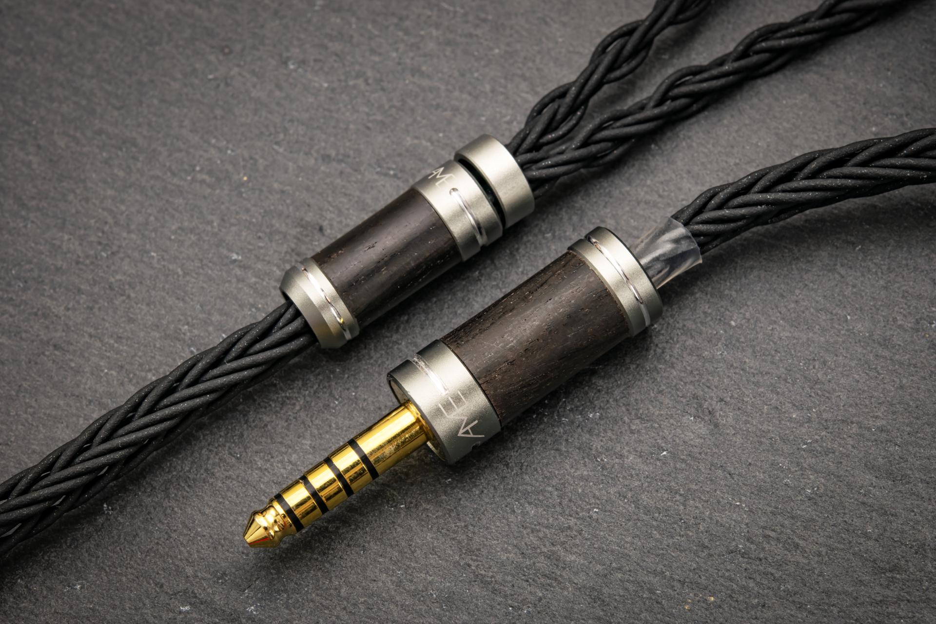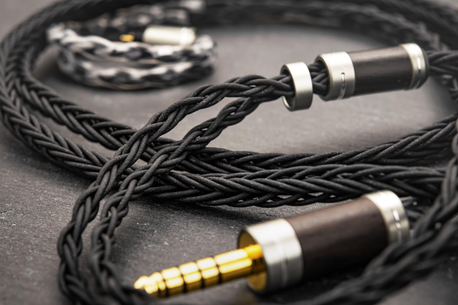 우드 파츠: 케이블의 전체적인 컬러 조합을 고려하여 고급 흑단(Ebony) 나무를 가공해 제작했습니다. 이는 시각적인 아름다움과 함께 불필요한 공진을 억제하는 데 기여합니다.